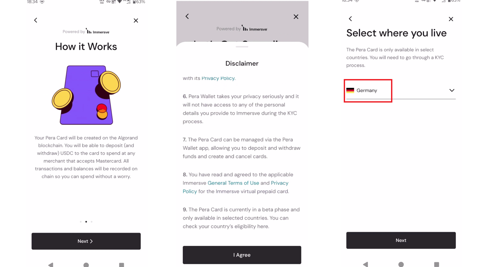 在 Pera Wallet 应用中进入“Card / Pera Card”模块,开始注册流程。