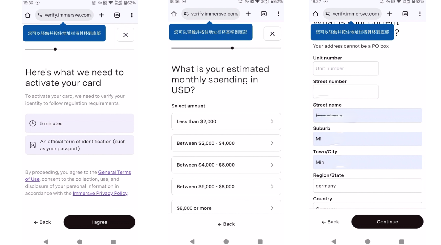 进入 KYC 页面,同意相关条款,完成相关财务状况调查,用英文填写国外居住地址,绑定相关邮箱和电话等。